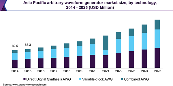 Arbitrary Waveform Generator Industry Overview The global arbitrary waveform generator market size was valued at USD 304.7 million in 2018 and is expected to r